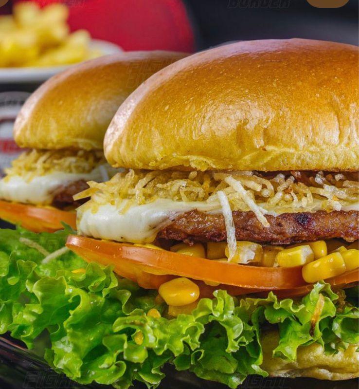 Ingredientes: Pao, Hamburguer, Mussarela, Alface, Tomate, Milho e Batata Palha